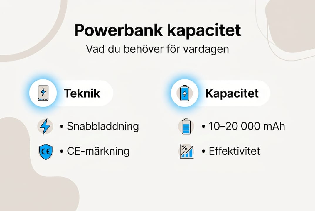 Du står på perrongen. Tåget är försenat. Mobilen visar 3 procent batteri. Situationen känns igen för de flesta svenskar, men lösningen är inte lika enkel som att bara köpa vilken powerbank som helst. Skillnaderna mellan modeller är stora och påverkar både prestanda och säkerhet. Den här guiden förklarar vad en powerbank verkligen är, hur tekniken fungerar och hur du väljer rätt modell för dina behov. Du får konkreta råd baserade på svenska tester från 2026 och praktiska tips för att maximera livslängden.