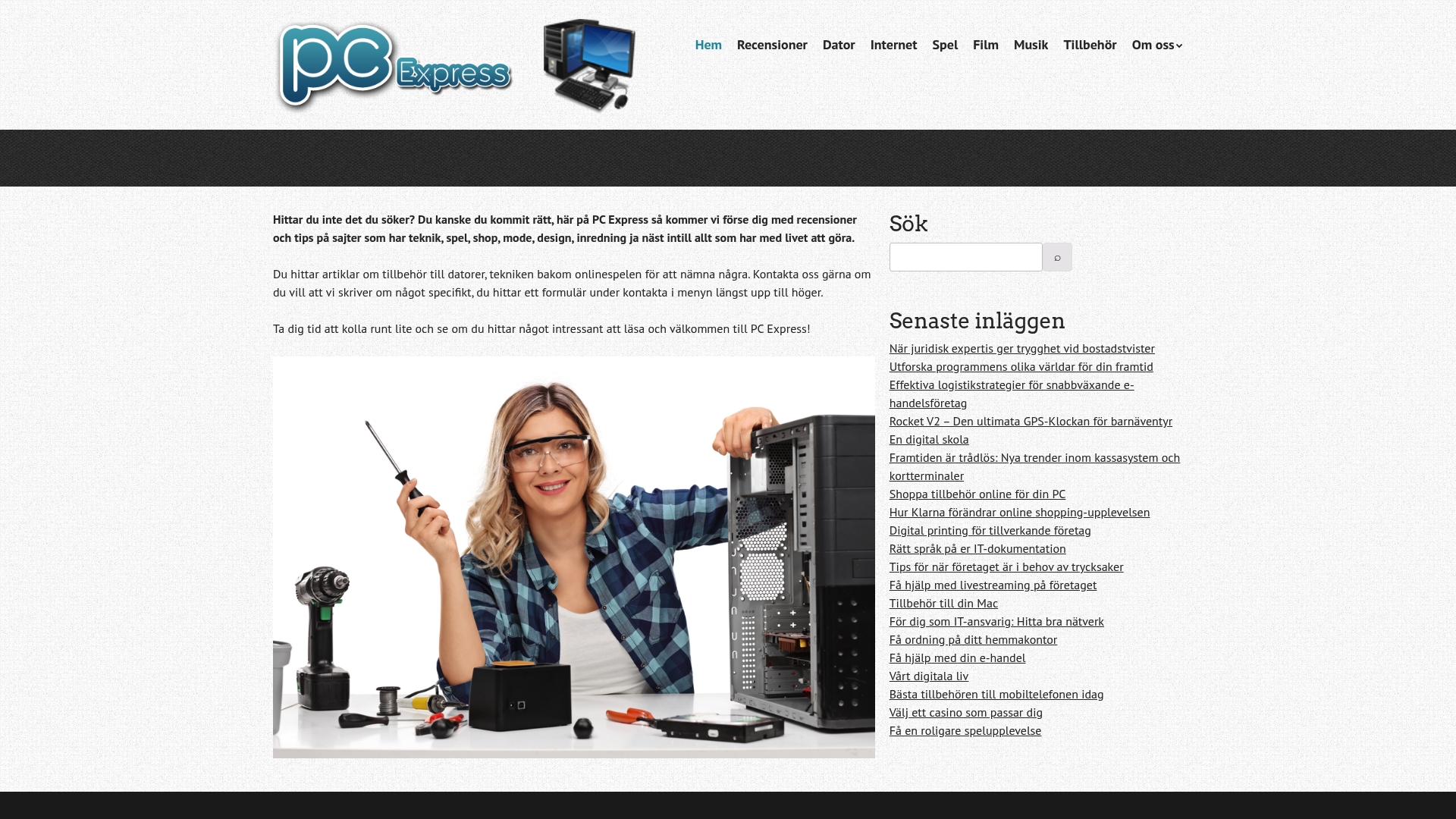 PC Express erbjuder bred bevakning av teknik och livsstil — från spelutrustning och datortillbehör till mode och inredning. Webbplatsen är kategoriserad i sektioner som Dator, Internet, Spel, Film, Musik och Tillbehör, vilket gör det enkelt att navigera efter intresseområde. Sidan innehåller även en kontaktformulär-funktion för läsarförslag och feedback, och publicerar kontinuerligt nya blogginlägg med råd och trendspaningar.