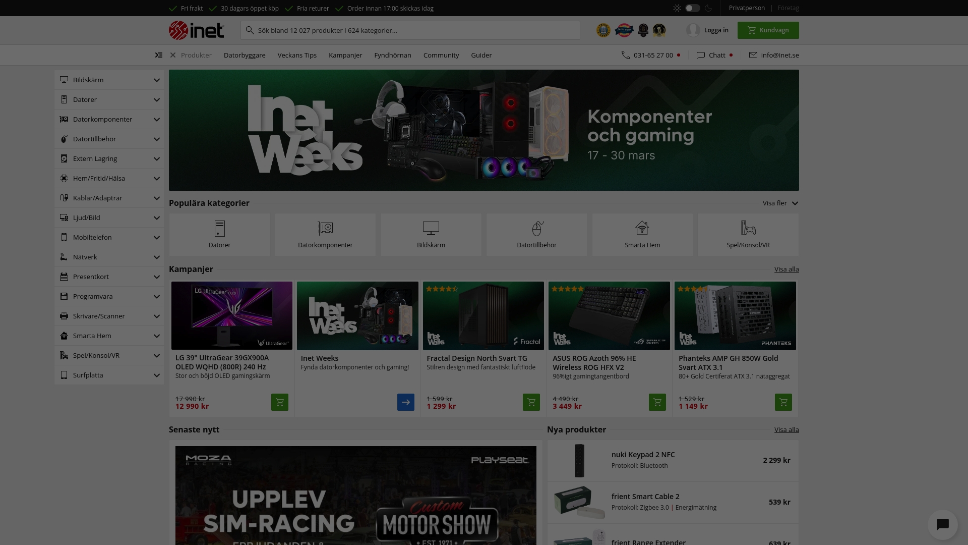 Inet erbjuder ett brett utbud av produkter, från datorer och komponenter till smarta hem-produkter och spelutrustning. Webbplatsen visar kundrecensioner och produktinformation som hjälper dig jämföra val.