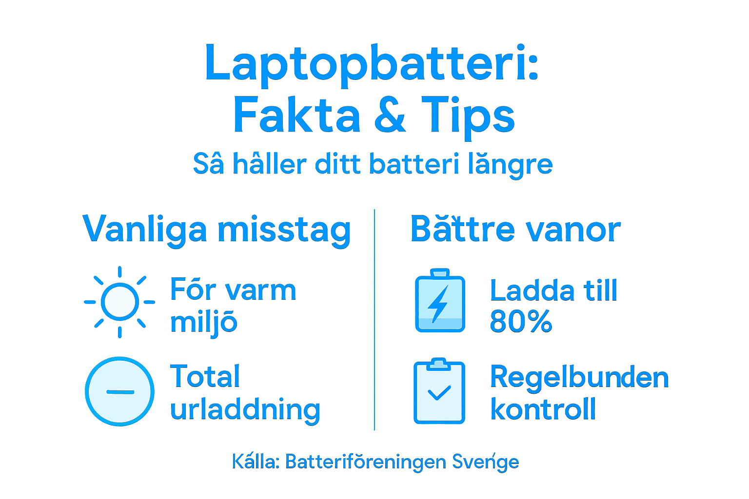 Att upptäcka att din laptop plötsligt inte håller laddningen hela arbetsdagen kan kosta både tid och pengar, särskilt för Sveriges småföretag och privatpersoner som är beroende av bärbara datorer. Det finns stor skillnad mellan olika batterityper och hur rätt batterihantering kan förändra din enhets livslängd. Här hittar du tydliga svar på hur laptopbatterier fungerar och vilka val som ökar både prestanda och pålitlighet i vardagen.