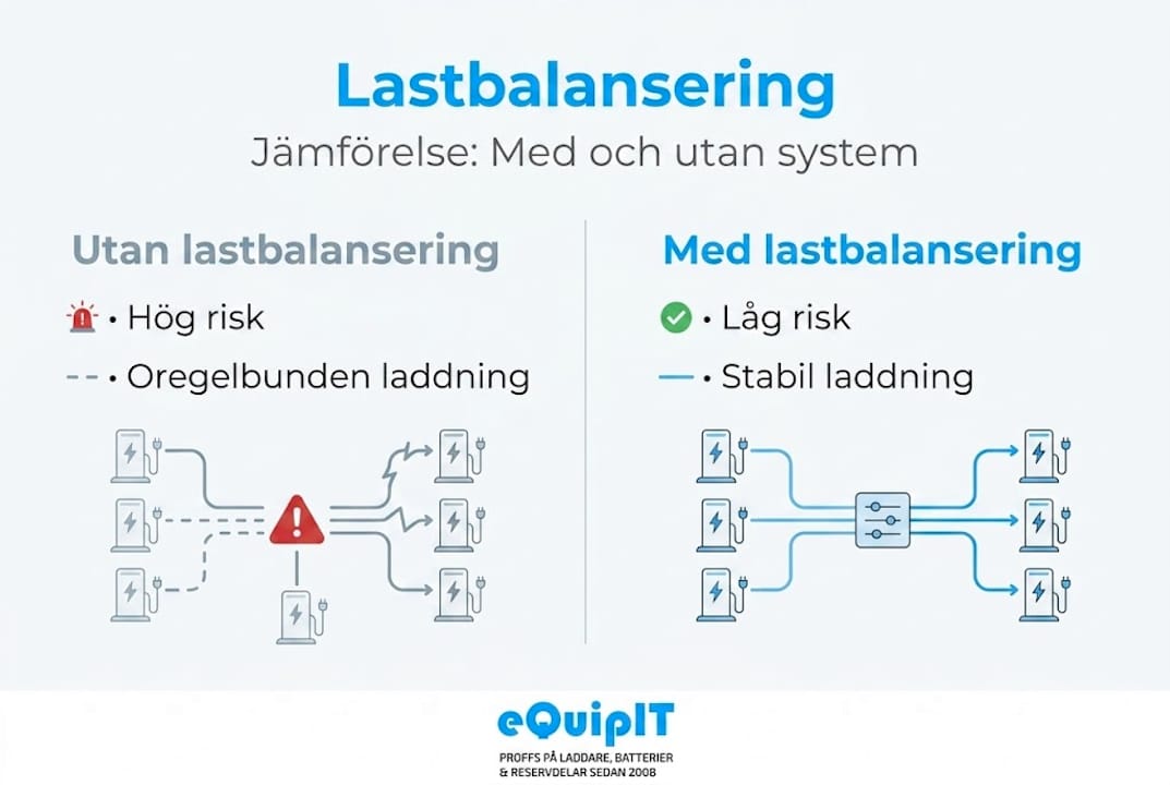 För smarta laddlösningar är lastbalansering standardfunktion i moderna system. Det lönar sig nästan alltid att investera i det från start, särskilt om du planerar att ha fler fordon i framtiden.