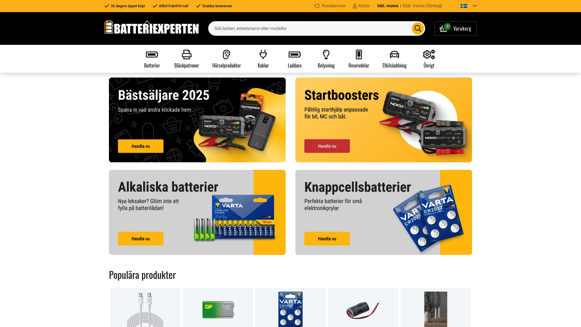 - Användarvänlig butik: En enkel sökfunktion och tydliga kategorier gör det lättare att hitta rätt batteri bland tusentals alternativ.