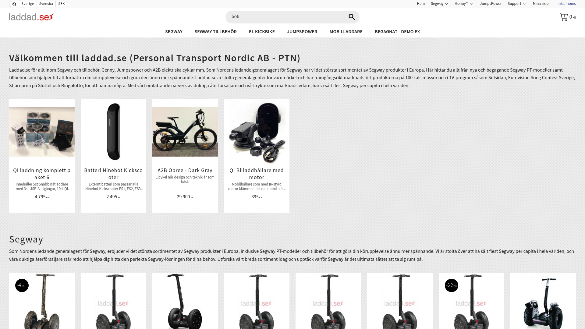 Laddad.se är en svensk e-handel som specialiserar sig på personlig transport och tillbehör, med fokus på Segway, Genny, JumpsPower och A2B elektriska cyklar. De fungerar som Nordens ledande generalagent för Segway och har både nya och begagnade modeller i sortimentet. Bottom line: om du söker en bred portfölj av personlig transport och reservdelar i Europa är Laddad.se ett starkt och erfarenhetsdrivet val.